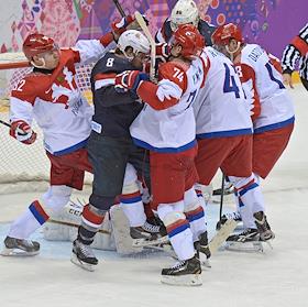 XXII Olympic Winter Games in Sochi. Group stage match between the national teams of Russia and United States.