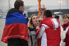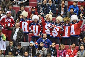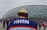 XXII Olympic Winter Games in Sochi. Fans before the hockey match between Slovakia and Russia.