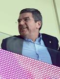 XXII Olympic Winter Games in Sochi. International Olympic Committee President Thomas Bach during the group stage match between hockey teams of Russia and United States.