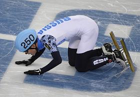 XXII Olympic Winter Games in Sochi. Member of the Russian Olympic team Vladimir Grigoriev in the final race at 1000 meters in the competition in short track men.