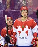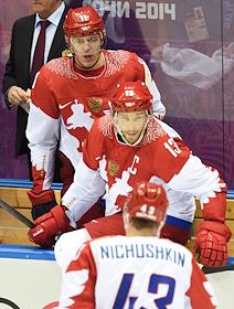 XXII Olympic Winter Games in Sochi. Members of the Russian Olympic team Evgeni Malkin (left) and Alexander Radulov (right) during the group stage match between the national teams of Russia and United States.