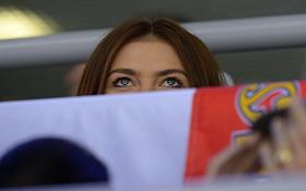 XXII Olympic Winter Games in Sochi. Member of the Russian State Duma on Physical Culture, Sport and Youth Affairs Alina Kabaeva during the group stage match between hockey teams of Russia and United States.