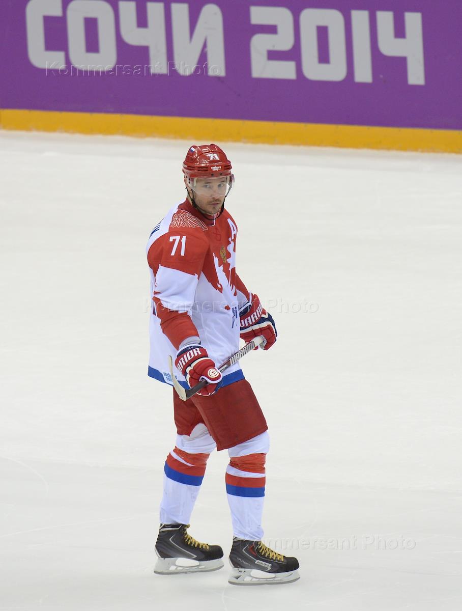 XXII Зимние Олимпийские игры в Сочи. Член олимпийской сборной России по хоккею Илья Ковальчук во время матча группового этапа между сборными России и США.
