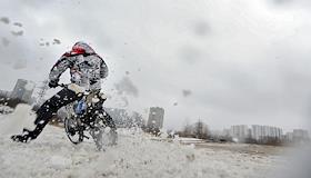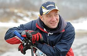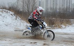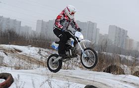 Мотогонщик Александр Самойлов во время тест-драйва мотоцикла AVM TT152E.