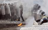 Евромайдан. Сторонники оппозиции во время столкновений с сотрудниками милиции у здания Верховной рады.