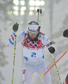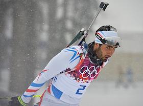 XXII Зимние Олимпийские игры в Сочи. Член олимпийской сборной Франции Мартен Фуркад во время масс-старта на 15 км среди мужчины на лыжно-биатлотном комплексе "Лаура".