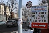 Виды Алма-Аты. Информационное табло пункта обмена валют.