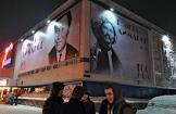 Жанровая фотография. Рекламный плакат с портретом президента Казахстана Нурсултана Назарбаева на улице города.