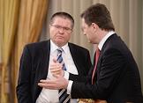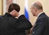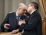 Министр экономического развития России Алексей Улюкаев (слева) и министр финансов России Антон Силуанов (справа) во время заседания правительства России.