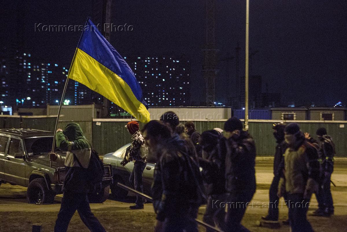 Ситуация в Киеве. Ночные патрули гражданской самообороны охраняющие территорию в спальных районах.