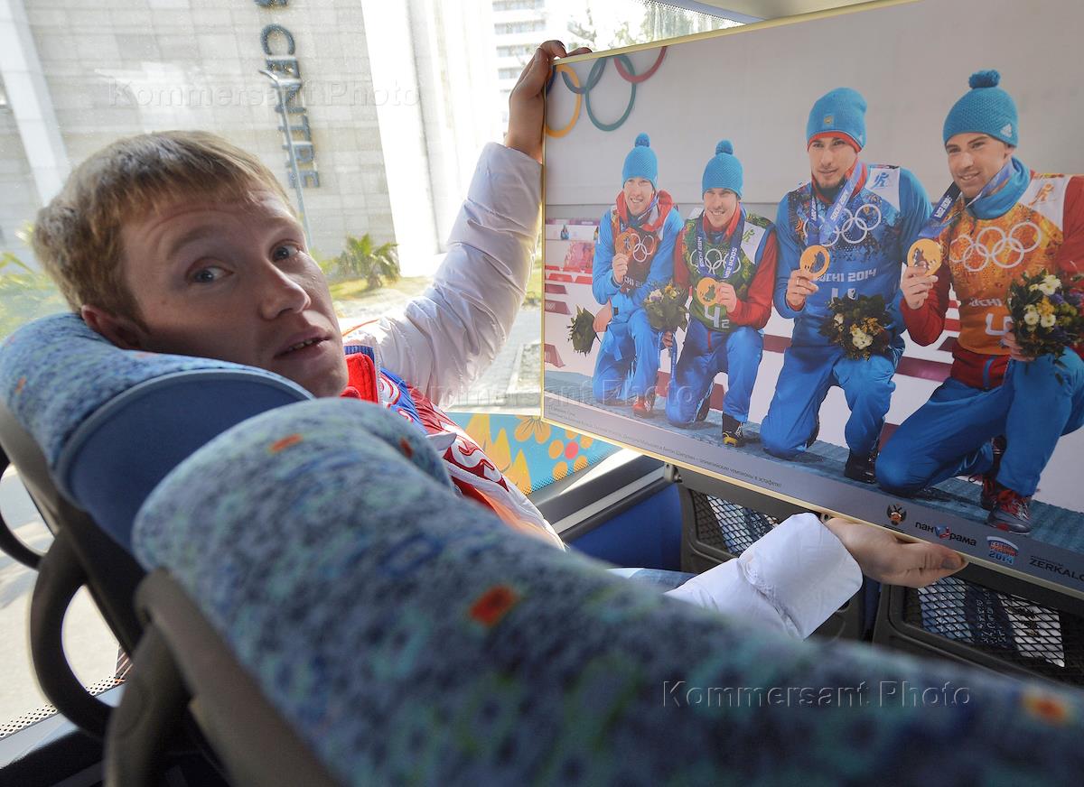 Olympic silver medalist in luge Albert Demchenko after the awards ceremony of winners of the XXII Winter Olympic Games in Sochi.