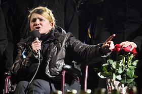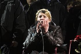 Лидер БЮТ Юлия Тимошенко, освобожденная из-под стражи решением Верховной рады, на сцене Майдана.