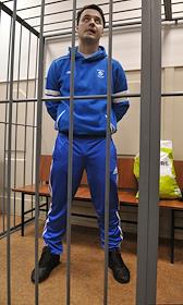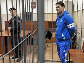 Глава Управления "Б" (борьба с хищениями в бюджетной сфере) Салават Муллаяров (слева), обвиняемый в провокации взятки, во время рассмотрения ходатайства следствия на его арест в Басманном суде.
