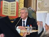 Мэр Москвы Сергей Собянин (слева) и Патриарх Московский и Всея Руси Кирилл (справа) перед началом совместного заседания попечительского и общественного совета по изданию Православной Энциклопедии. Заседание прошло в храме Христа Спасителя.