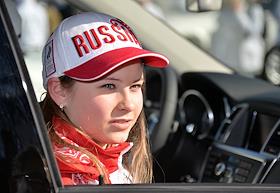 Олимпийская чемпионка по фигурному катанию Аделина Сотникова на церемонии вручения Фондом поддержки олимпийцев России автомобилей победителям и призерам ХХII Олимпийских зимних игр 2014 года в Сочи. Церемония прошла на Васильевском спуске.