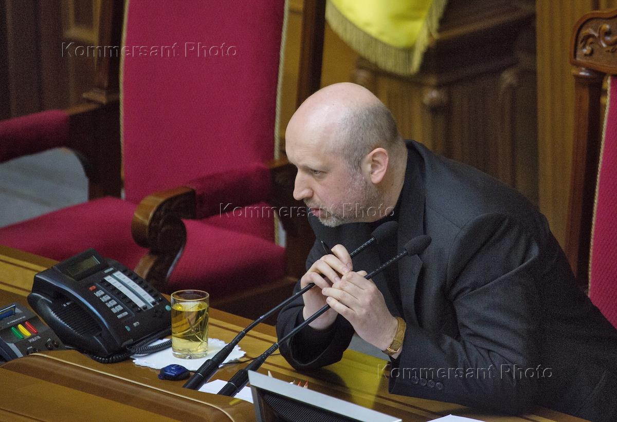 Заседание Верховной рады Украины (ВРУ). Голосование за новый состав Кабинета министров Украины (КМУ). Исполняющий обязанности президента Украины, председатель ВРУ VII созыва Александр Турчинов во время заседания.