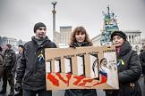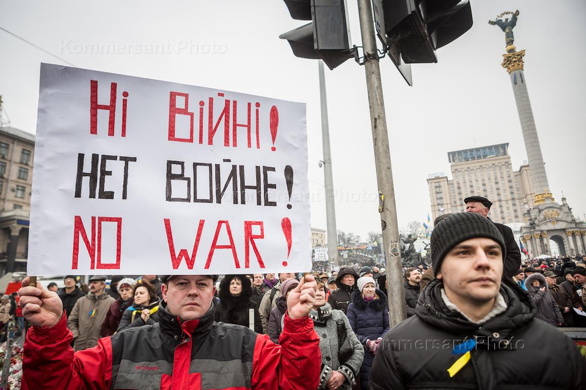 Митинг против ввода Российских войск на Крымский полуостров прошел на Площади Независимости (Майдане Незалежности). Плакат "Нет, войне!".