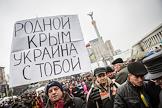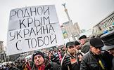 Митинг против ввода Российских войск на Крымский полуостров прошел на Площади Независимости (Майдане Незалежности). Плакат "Родной Крым! Украина с тобой!".