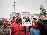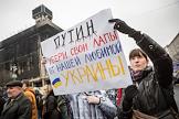 Митинг против ввода Российских войск на Крымский полуостров прошел на Площади Независимости (Майдане Незалежности). Плакат "Путин, убери свои лапы от нашей любимой Украины!".