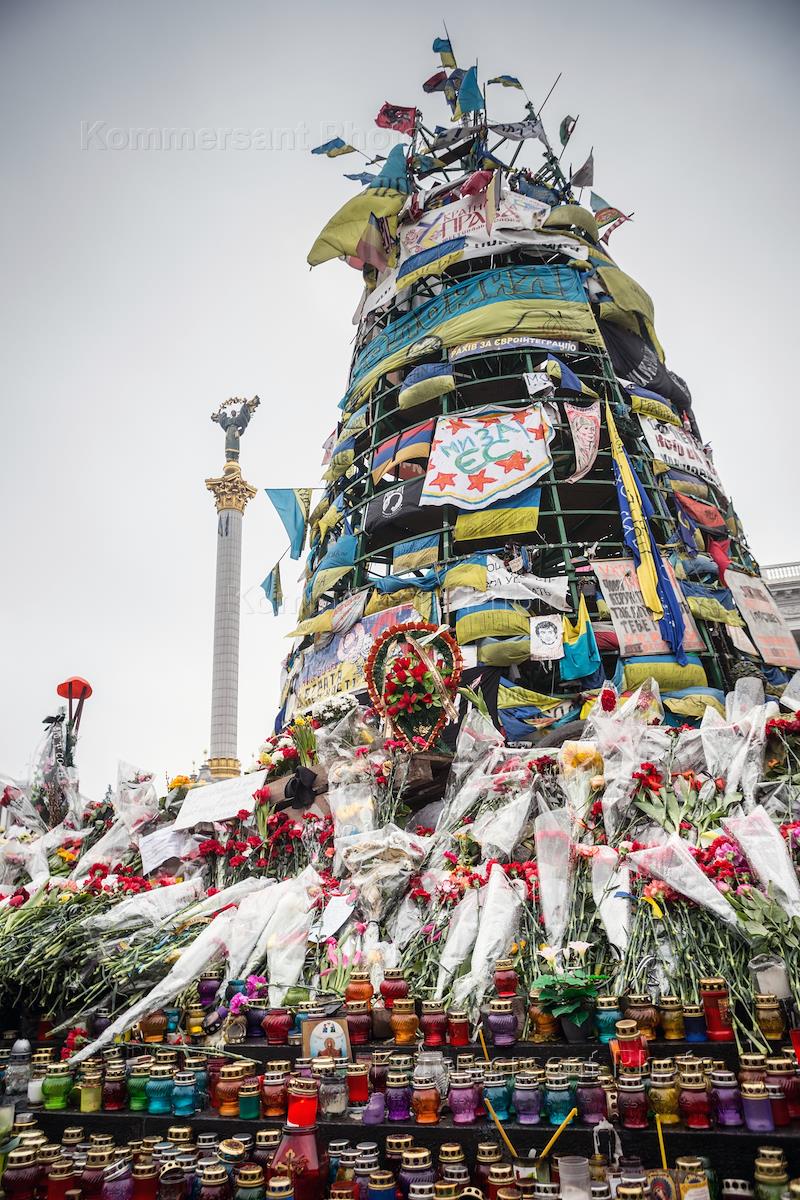 Евромайдан. Цветы и свечи по погибшим на Площади Независимости (Майдане Незалежности).