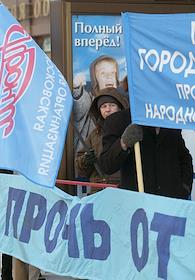 Участники пикета работников образовательных учреждений из 18 субъектов России, против правительственной концепции реформирования системы оплаты труда бюджетников. Пикет прошёл у здания Государственной Думы России.
