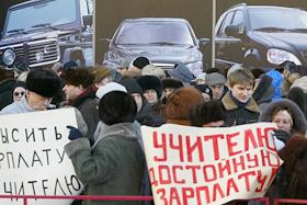 Участники пикета работников образовательных учреждений из 18 субъектов России, против правительственной концепции реформирования системы оплаты труда бюджетников. Пикет прошёл у здания Государственной Думы России.