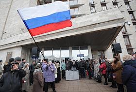 Политическая ситуация в Донецке. Участники митинга у здания областной Рады Донецка.