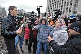Политическая ситуация в Донецке. Участники митинга у здания областной администрации и думы.