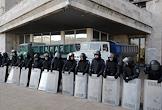 Милицейское оцепление у областной администрации и думы после эвакуации народных ополченцев, захвативших здание в ходе стихийного митинга. Поводом для эвакуации стало телефонное сообщение, что в здании заложено взрывное устройство.
