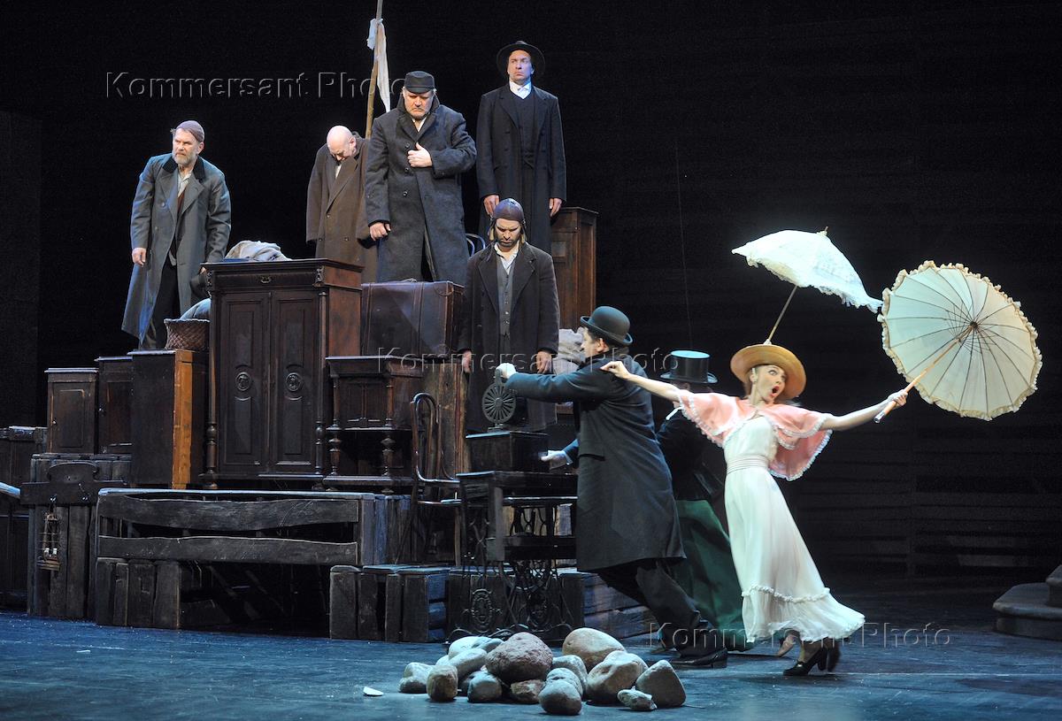 Пресс-показ спектакля "Улыбнись нам господи" по роману Григория Кановича в постановке режиссера Римаса Туминаса в театре имени Евгения Вахтангова.