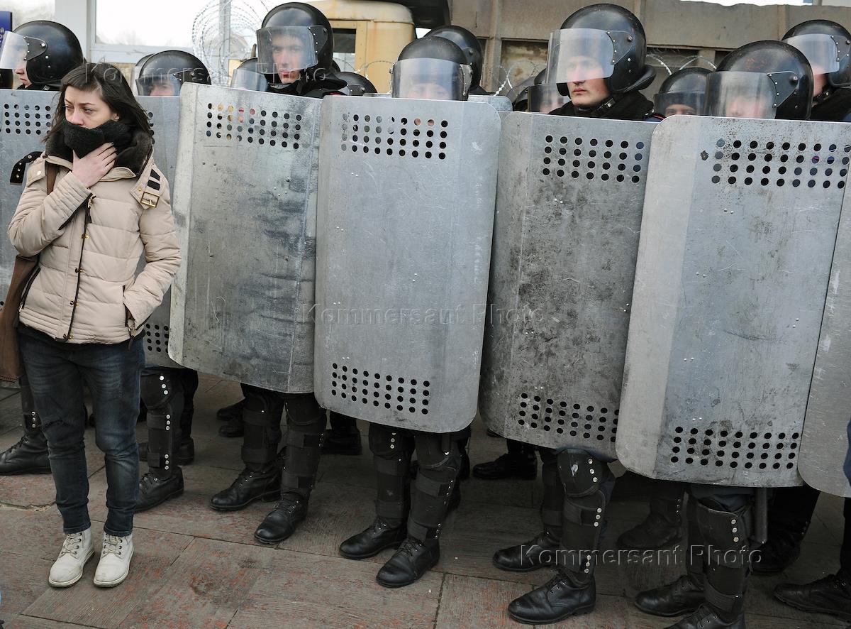 Политическая ситуация в Донецке. Митинг за проведение местного референдума по статусу Донбасса прошел на площади Ленина. Оцепление из сотрудников правоохранительных органов.