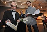 Художник Дмитрий Гутов (слева) на церемонии открытия своей выставки "Жизнь тяжела, но, к счатью, коротка" в галерее "Триумф".