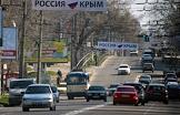 Автомобильная трасса "Херсон-Крым". Плакаты-растяжки с надписью "Россия любит Крым".