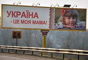 Автомобильная трасса "Херсон-Крым". Плакат на трассе "Украина - это моя мама!".