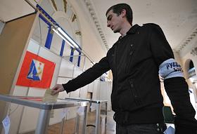 Референдум о статусе Автономной республики Крым (АРК). Голосование на избирательном участке.