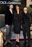 Открытие бутика Dolce&Gabbana в ЦУМе. Актриса Моника Белуччи (в центре) и итальянские дизайнеры Стефано Габбана (слева) и Доменико Дольче (справа) на церемонии открытия.