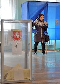 Референдум о статусе Автономной республики Крым (АРК). Голосование на избирательном участке.