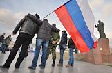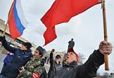 Референдум о статусе Автономной республики Крым (АРК). Мужчина с флагом России у Верховной Рады.