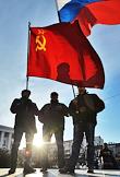 Референдум о статусе Автономной республики Крым (АРК). Жители Симферополя с флагами России и СССР.