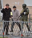 Референдум о статусе Автономной республики Крым (АРК). Военный следит за порядком на улицах города.