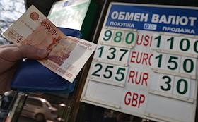 Референдум о статусе Автономной республики Крым (АРК). Покупатель держит денежную купюру России достоинством 5000 рублей в пункте обмена валют.