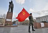 Referendum on the status of the Autonomous Republic of Crimea (ARC). Residents of Simferopol with the flags of Russia and the USSR.