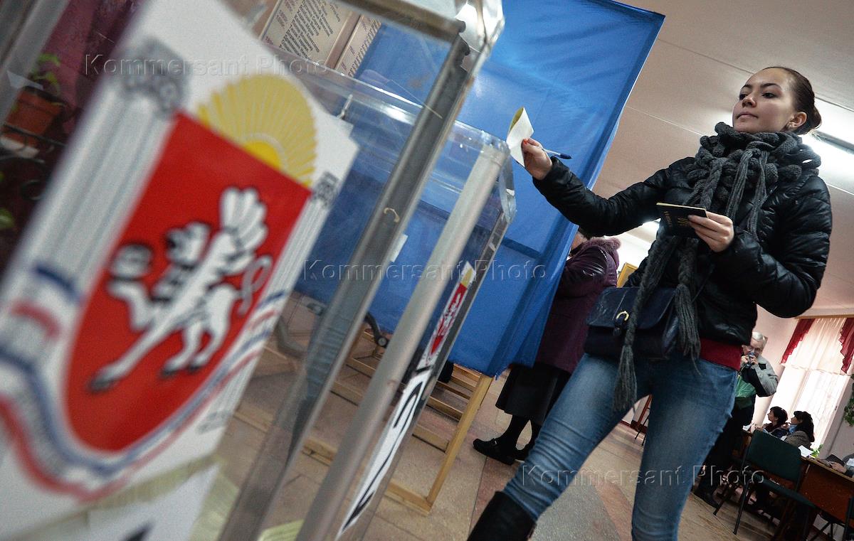 Референдум о статусе Автономной республики Крым (АРК). Голосование на избирательном участке.