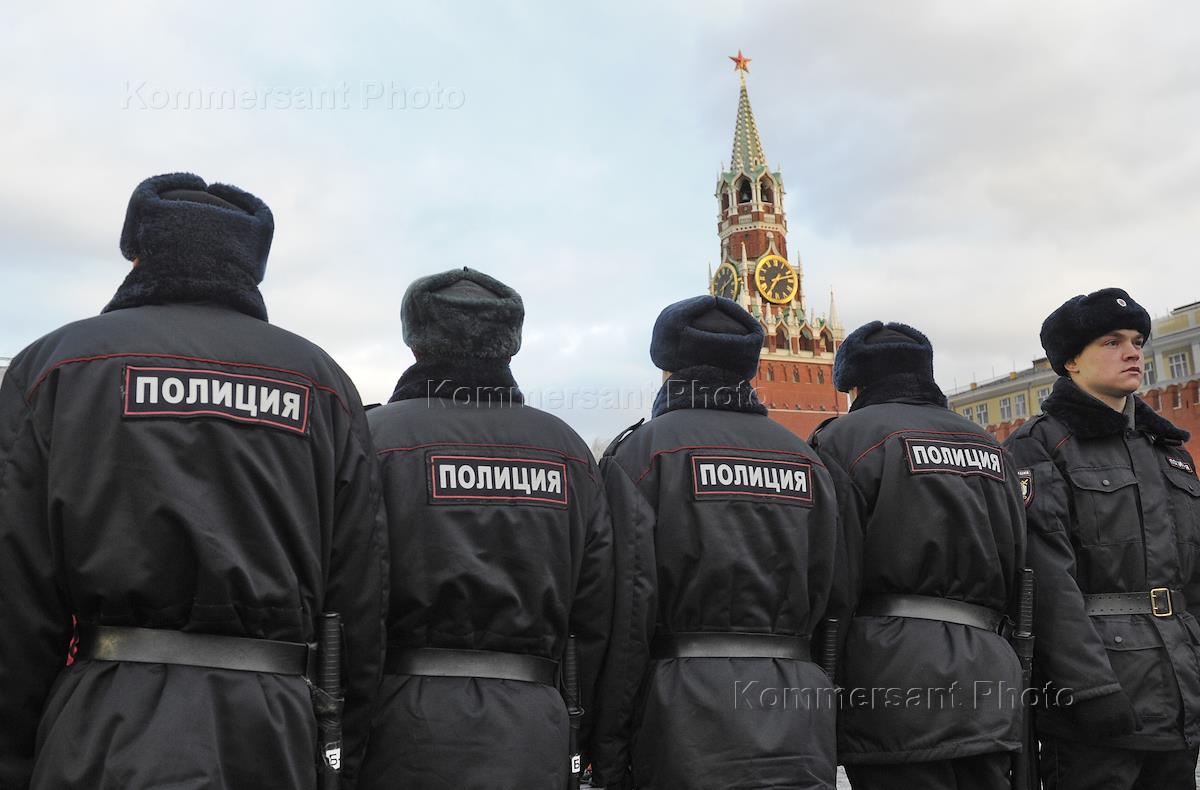 Акция в поддержку референдума в Крыму. Митинг-концерт "Мы вместе!" прошел на Красной площади. Оцепление полиции во время митинга.