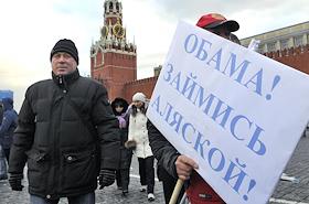 Акция в поддержку референдума в Крыму. Митинг-концерт "Мы вместе!" прошел на Красной площади. Плакат "Обама! Займись Аляской!".