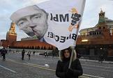 Акция в поддержку референдума в Крыму. Митинг-концерт "Мы вместе!" прошел на Красной площади. Плакат "Верим Путину!".