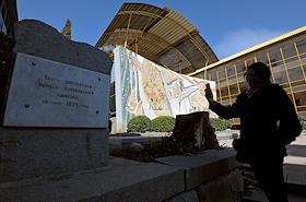 Международный детский центр "Артек" в посёлке Гурзуф. Памятная доска с надписью "Здесь состоялась первая Артековская линейка 16 июня 1925 года".