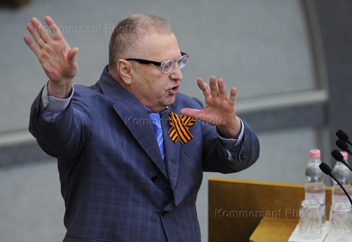 Лидер Либерально-демократической партии России (ЛДПР), член комитета Государственной думы (ГД) России по обороне Владимир Жириновский во время дополнительного пленарного заседание ГД России, на котором рассмотрели ратификацию договора о принятии Крыма и Севастополя в состав России.