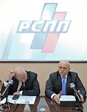 Исполнительный вице-президент Российского союза промышленников и предпринимателей Виктор Черепов (слева) и губернатор Омской области Виктор Назаров (справа) на совместном заседании Координационного совета по промышленной и научно-технической политике МА "Сибирское соглашение" и Координационного совета отделений РСПП Сибирского федерального округа. Заседание прошло в рамках Недели российского бизнеса.