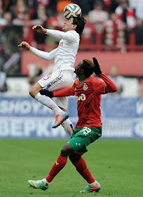 СОГАЗ - Чемпионат России по футболу. Премьер-лига. 23 тур. Матч между командами "Локомотив" (Москва) - "Спартак" (Москва) прошел на стадионе "Локомотив". Футболист Юра Мовсисян (слева) во время матча.